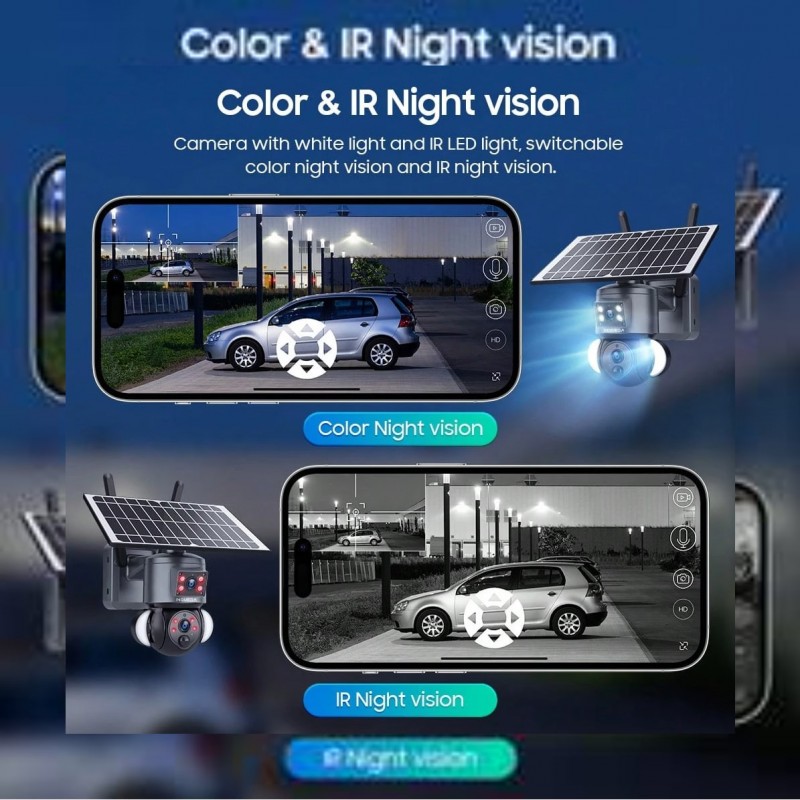 1 pieza INQMEGA Cámara de solar de 6MP 4G LTE con doble lente, detección de movimiento PIR y notific ₦568,690 |